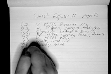 Site-specific installation for the Long Winter Galleria, a music and art event at the Galleria Mall in Toronto. This piece responded to the arcade cabinets in the mall by taking a video of a perfectly played game of Street Fighter II (thanks and credit to the player Schlauchi and www.longplays.org for providing such an elegant playthrough) and projecting it slowed down until it filled the whole 6 hour duration of the event. On a small monitor nearby, I played a synced video of myself taking notes on the game in the role of a censor, especially noting its violence and racism.